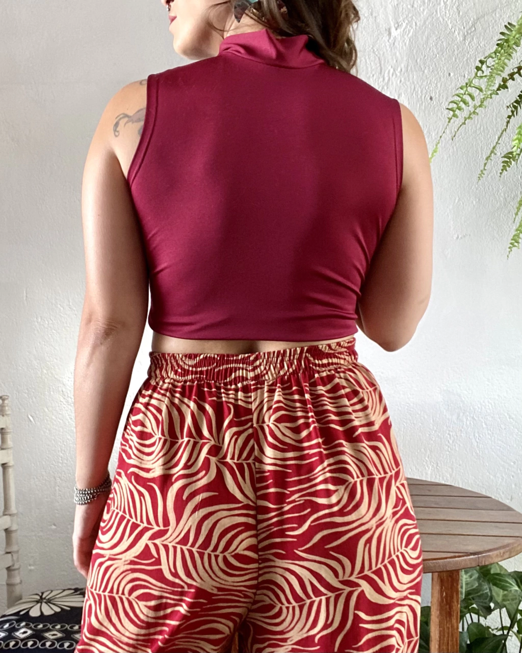 Cropped regata gola alta na cor marsala, confeccionado em elastano.