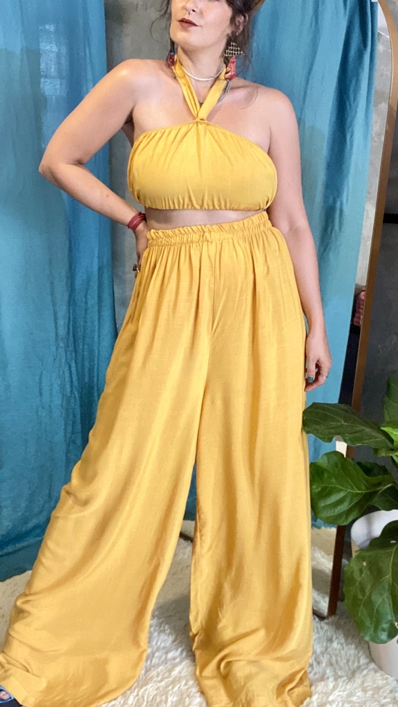 Calça pantalona confeccionada em viscolinho na cor mostarda. Calça pantalona para acompanhar nossos kimonos e outras peças. Após muitos pedidos trouxemos esta beleza para você se divertir fazendo conjuntos ou combinando estampas brincando de mixar as nossas estampas incríveis. A nova coleção tem a proposta de sempre ter as combinações de mixes com algo que trazemos em algumas outras peças o que torna possível combinar as calças com vários kimonos diferentes, está incrível, divirta-se!!