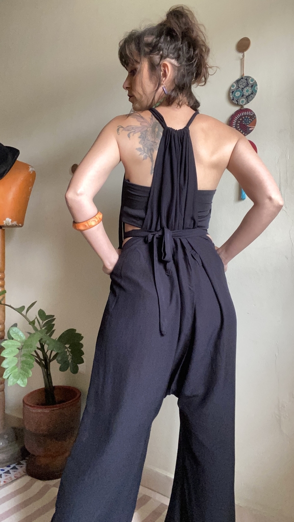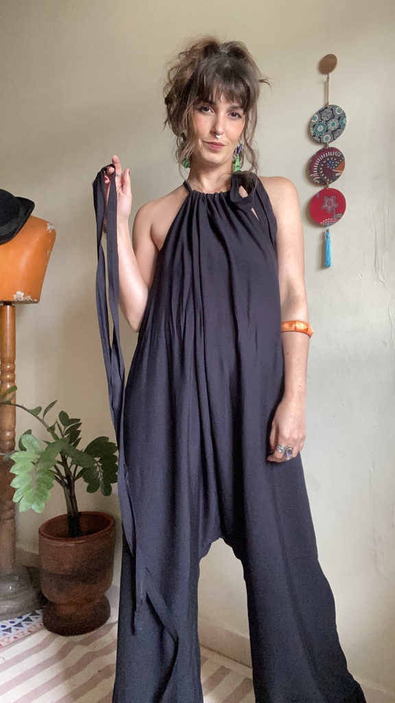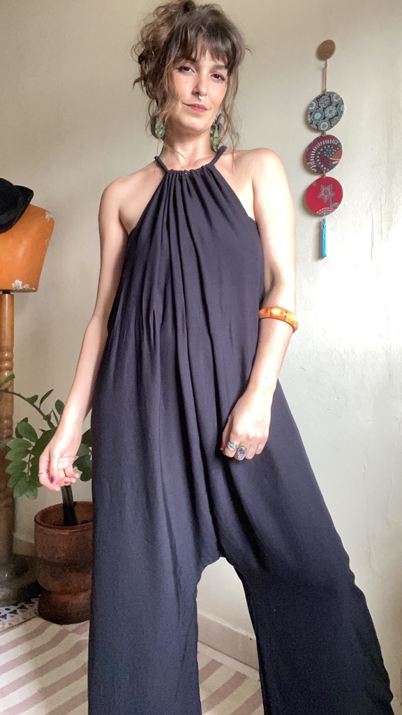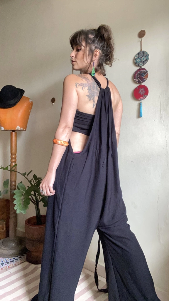 Além de macacão de viscose preto, você encontra tambem em linho nas cores bege, verde militar, marsala, terracota e caramelo (solicite a sua cor preferida pelo botão whatsapp do site)