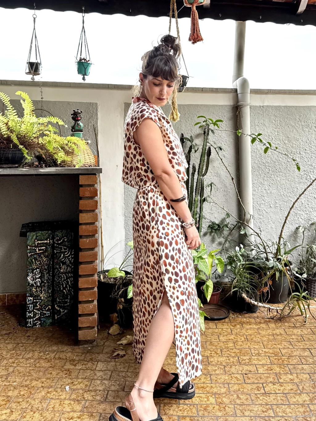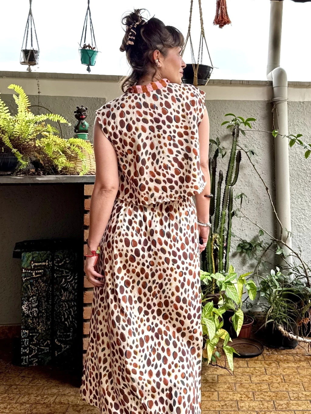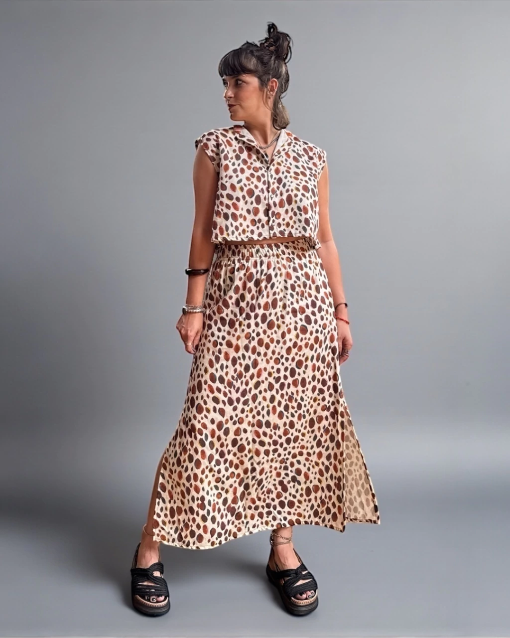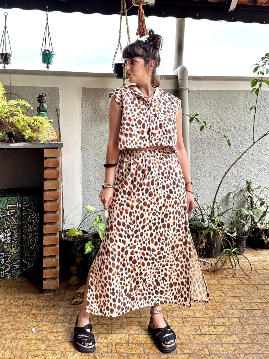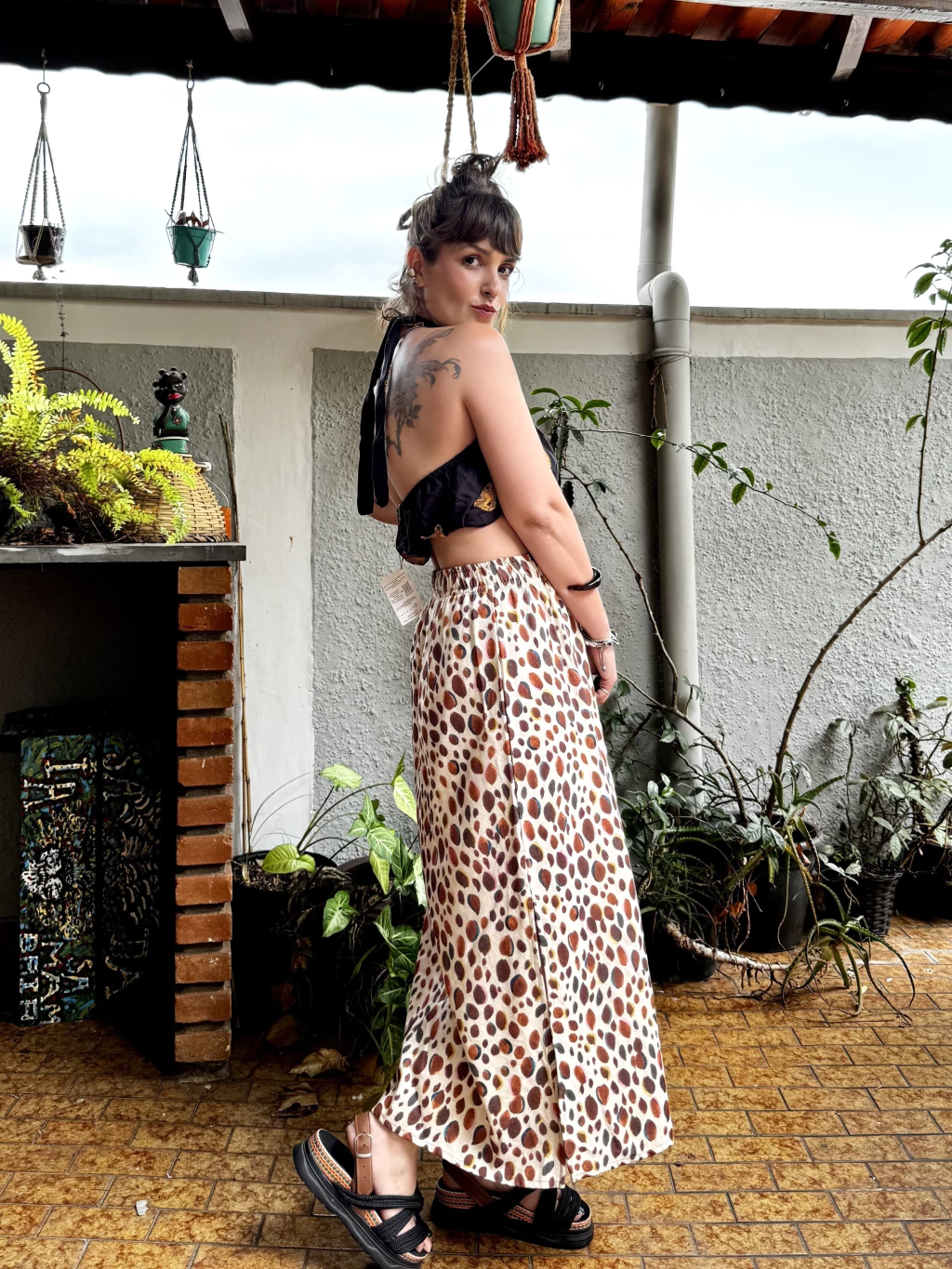 As saias midi Tropicália garantem conforto e praticidade no seu look do dia!