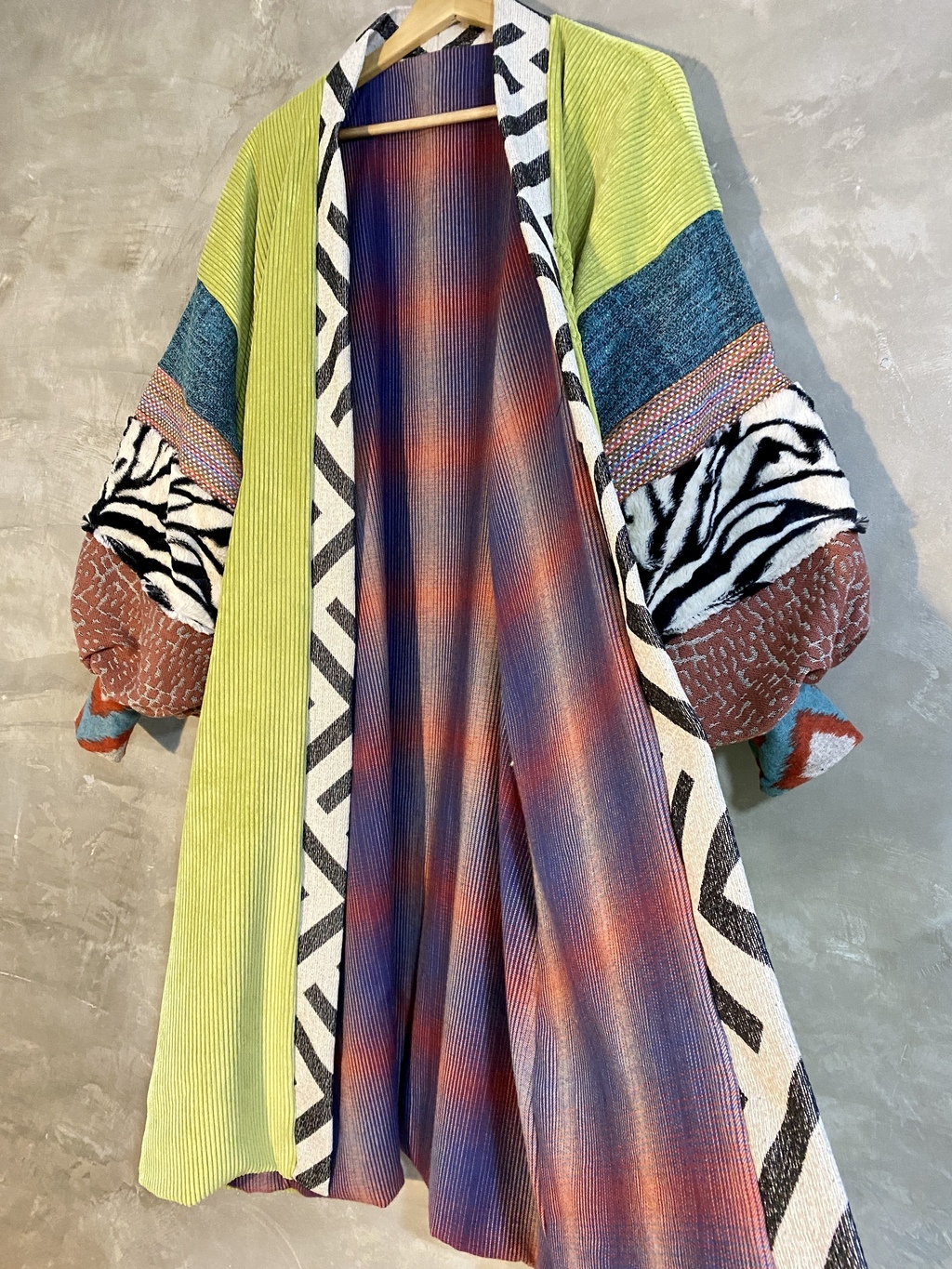 Nossos casacos são feitos de forma totalmente artesanal e utilizações do upcycling de cortes da marca, criando esta incrivel manga colorida, o casaco é DUPLA FACE, e bem quentinho, com punhos diferentes e coloridos!