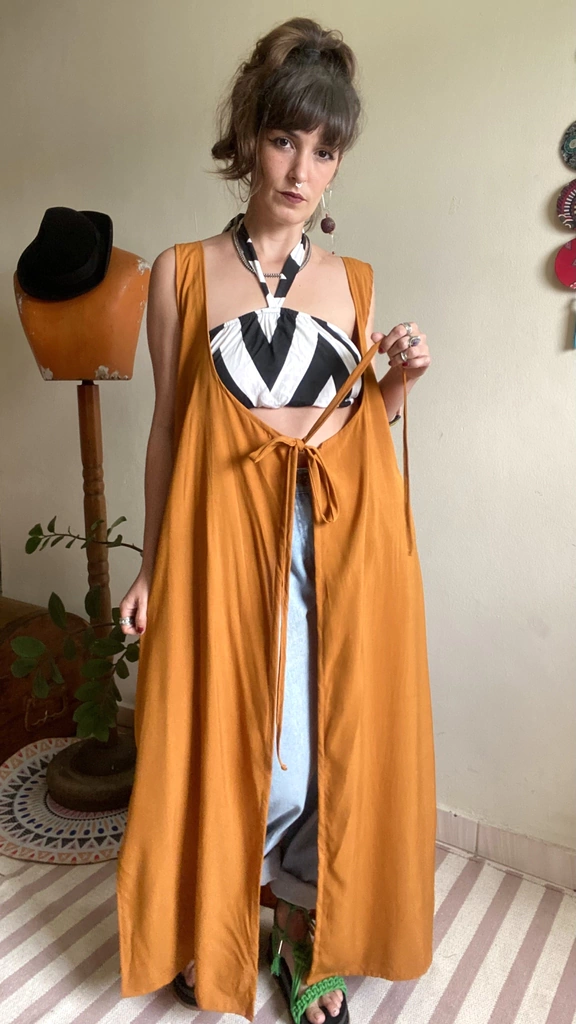 Ele é super confortável e leve, e pode ser usado transpassado na frente transformando-se em vestido!